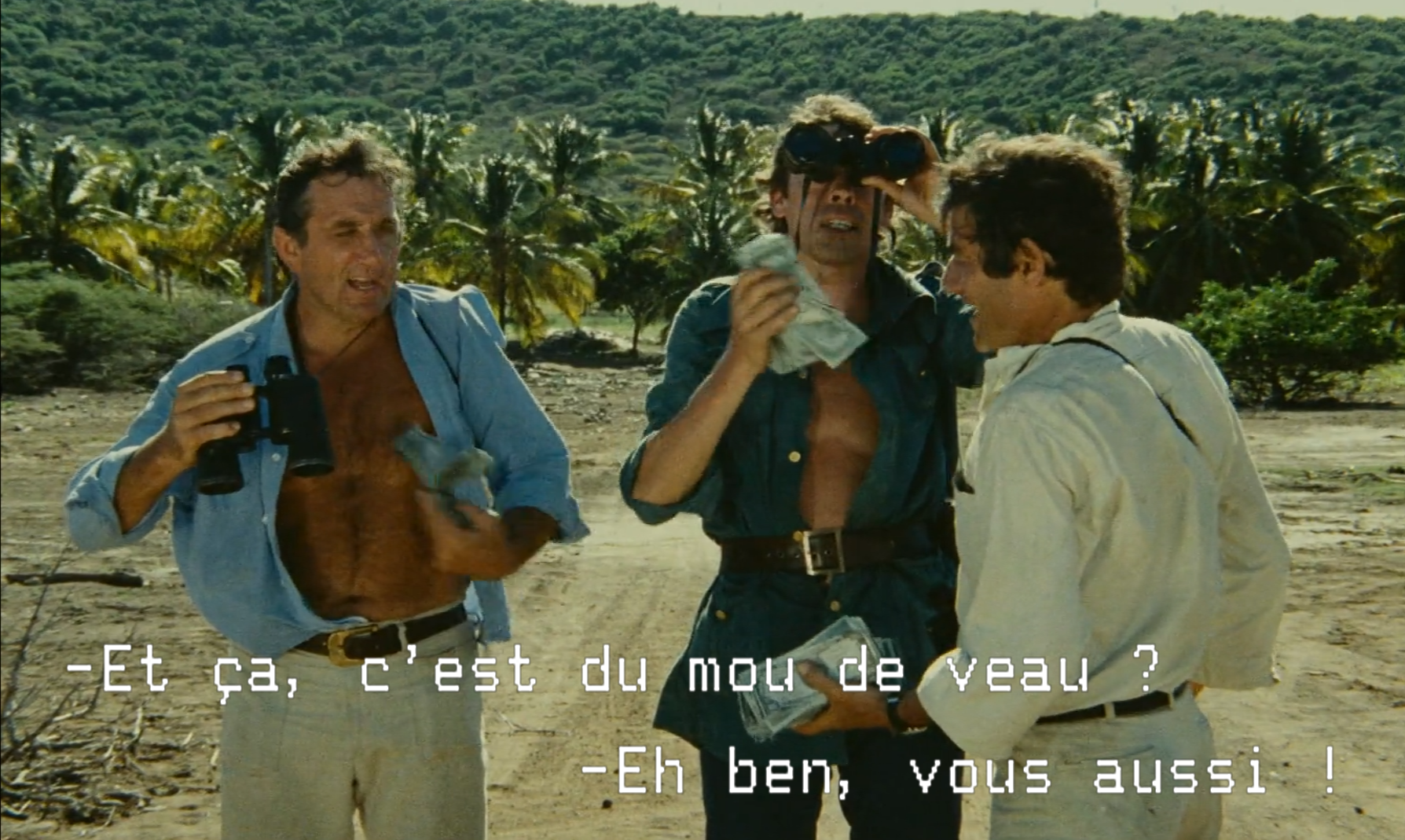 J’ai déjà écrit dans mon groupe préféré sur Facebook que de tous les films français des années 70 et 80 que j’ai vus, je pense que c’est peut-être celui qui vient du monde le plus éloigné du nôtre. On peut toujours fumer dans un avion, il n’y a pas beaucoup de sécurité à l’aéroport et les comptes bancaires suisses sont toujours privés. Il y a aussi beaucoup de discussion parmi les méchants de l’idéalisme politique et pourquoi ils commettent leurs crimes. Pour une comédie et un film d’action, il y a des idées lourdes!