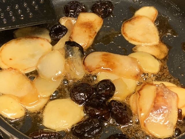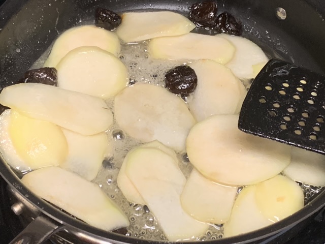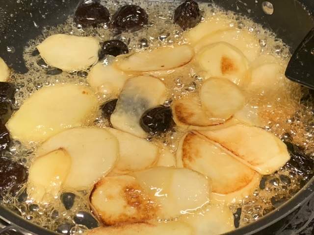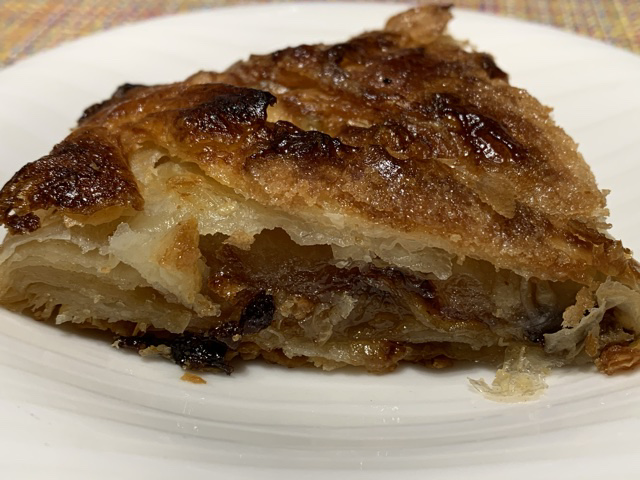 Ce dessert est plein de poires et de pruneaux, tout caramélisé, entre deux feuilles de pâte feuilletée. Oui, c’est similaire à la galette des rois (et cette similarité est la cause de mon erreur). Je remercie l’Agence de Développement Touristique d’Ariège Pyrénées pour la recette originale. Cette fois, je n’ai pas changé la quantité. Mais après avoir fait la version originale, j’ai trouvé que la pâte feuilletée avec 3 œufs était trop molle. Donc j’ai décidé de refaire la recette avec la même recette de pâte feuilletée qu’on trouve dans ma galette des rois. Mais j’aurais dû réduire la température, et cette erreur a abouti à un dessert un peu brûlé. Je vais vous donner la recette avec ce changement.