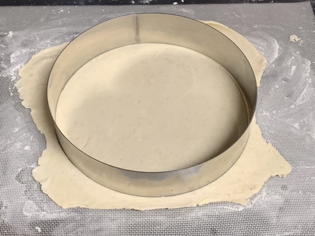 - Incorporer la farine et pétrir jusqu’à la bonne consistance. Faire une jolie boule avec la pâte, couper 2 fentes dans le boule avec un couteau, et laisser reposer au frigo pendant 30 minutes.
