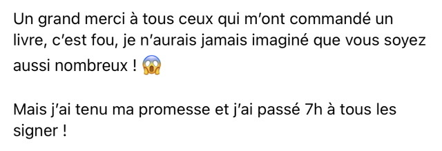 Je m’attendais donc un livre signé. J’ai l’impression qu’elle a aussi dit plus tard qu’il y avait trop de commandes, alors elle ne pouvait plus signer tous les livres, mais j’ai commandé le mien le 4 décembre.