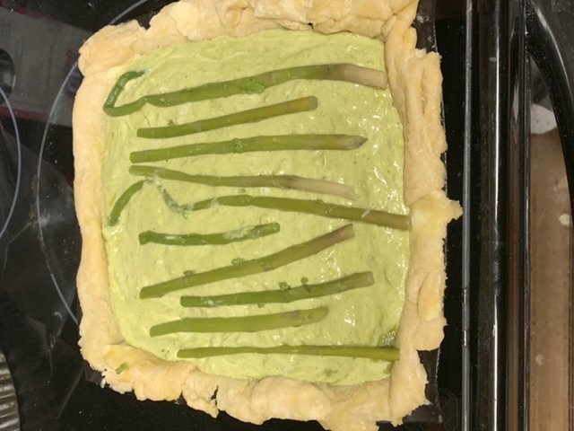 Avant de vous donner la recette de la tarte aux asperges, je dois avouer quelque chose. J’ai trop rempli la tarte, et je l’ai renversée en la mettant dans mon four. J’ai pensé à la refaire, mais alors que ce n’est pas aussi belle que je la voudrais, c’est par ailleurs bien fait. Donc, en premier, la tarte aux asperges.