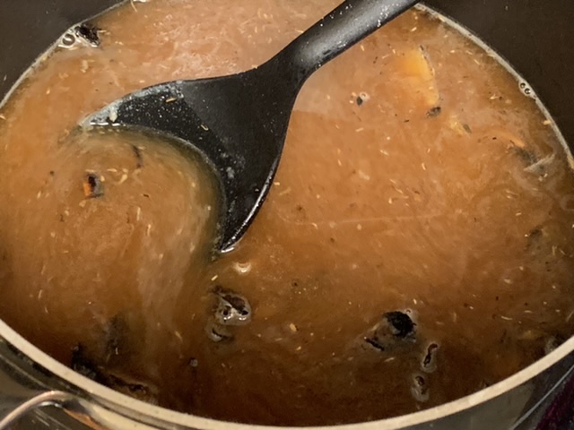 - Écrémer toute mousse qui remonte à la surface, puis réduire le feu et laisser mijoter doucement pendant 45 minutes.