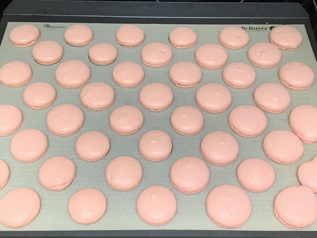 Hélas, les coques se sont cassées. Mais je crois que les petits macarons sont de belles réussîtes !