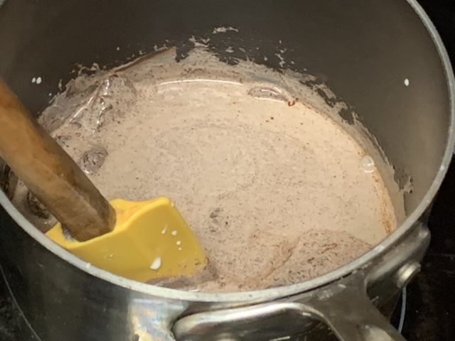 - Remettre la mélange dans la casserole. Continue à faire bouillir et mélanger jusqu’à ce que la crème devienne bien épaisse. C’est prêt quand des bulles commence à apparaître.