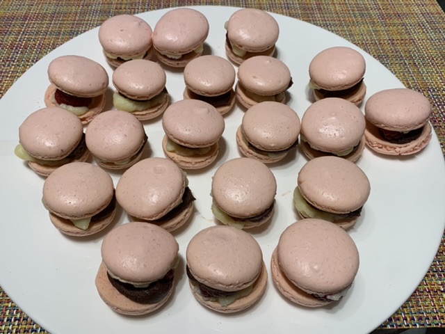 Pendant ces derniers mois, j’ai beaucoup reçu d’inspiration de mes héros Laurène Lefèvre et Pierre Hermé. Je voulais faire une combinaison de leurs idées pour le jour de la Saint-Valentin, le macaron «Chloé» du livre des macarons de Pierre Hermé (appelé «Macaron»), et le macaron géant de Laurène. Tous les deux utilisent de la framboise, l’un avec du chocolat et l’autre avec de la vanille. Et voilà, mon macaron Saint-Valentin !