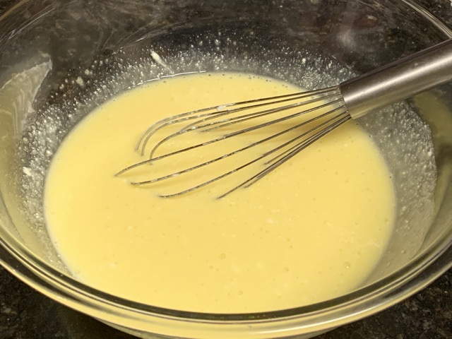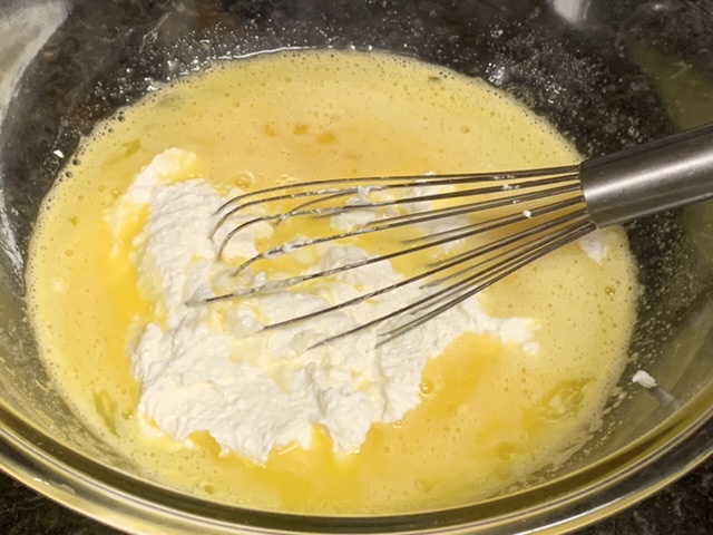 - Mettre la mélange dans un saladier. Ajouter les œufs et fouetter bien.