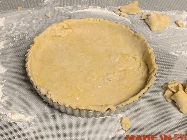 - Étaler la pâte et la mettre dans un moule à tarte.