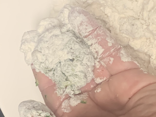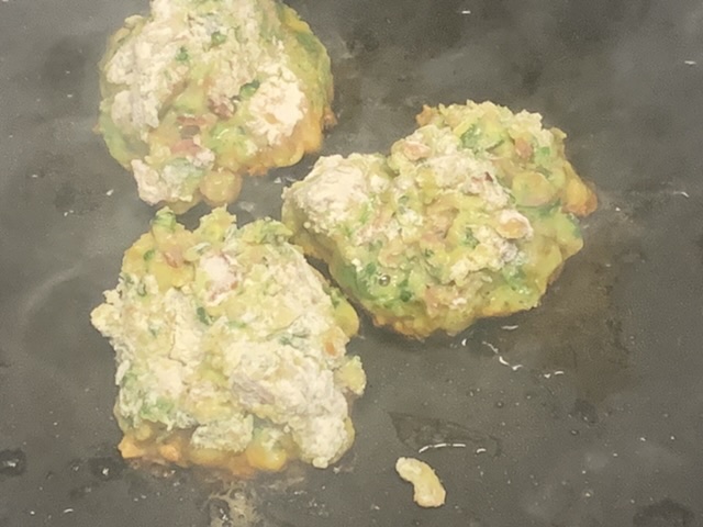 - Faire avec de la farine des petites boules, pour ensuite les disposer dans la poêle (quand un côté commence à dorer le retourner pour faire dorer l’autre). Les farçous dorerons très vite, donc faites attention !