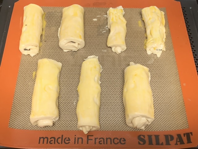 Facultatif : dorer avec une jaune d’œuf. Je n’ai pas fait ça parce que j’ai pensé que la pâte était un peu molle, mais c’est clair maintenant que ça marchera.