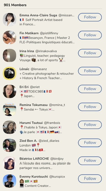 Ce qui rend Clubhouse intéressant pour moi est qu’il y a des gens de partout dans le monde, alors, on se retrouve dans des situations presque comiques. Un jour, j’ai visité un groupe appelé «Je veux parler français» (ce n’est pas une traduction) où deux femmes japonaises à Tokyo parlaient avec une iranienne et une thaïlandaise sur les traditions du nouvel an iranien, tout en français. Je ne plaisante pas — voici des membres du groupe :