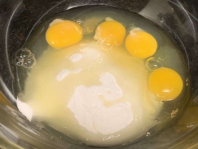 D’autre part, délayer le jaune d’œuf avec le sucre glace et le cognac.