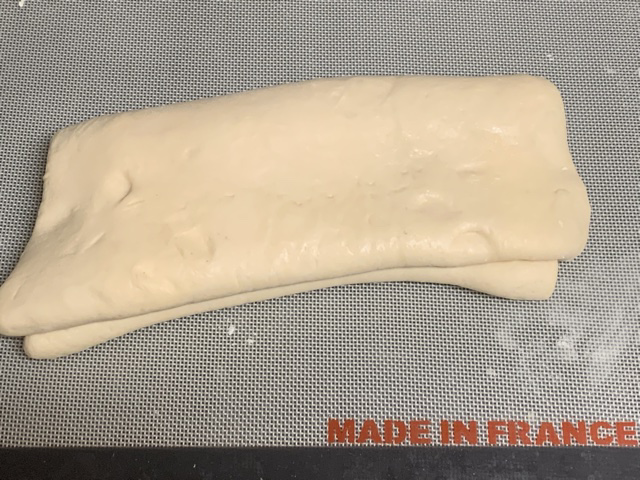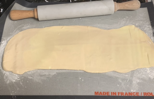 Il faut bien étaler la pâte au moins trois fois. C’est arrivé, je crois.