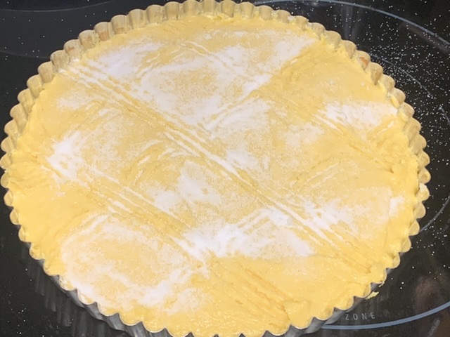Saupoudrer de sucre cristallisé et faire des stries avec une fourchette.