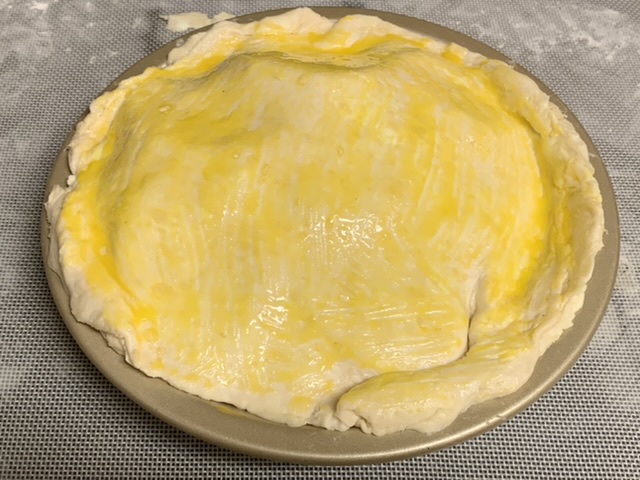 - Mélanger dans un bol un jaune d’œuf et un fond d’eau puis badigeonnez la tourte du mélange. Ne pas oublier les bords.