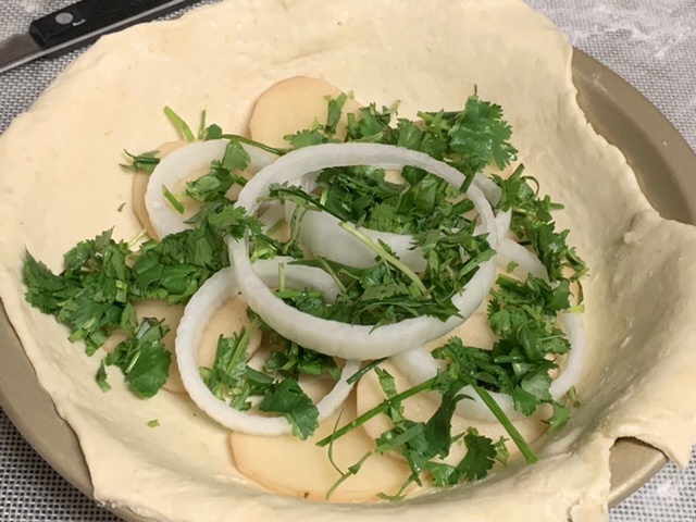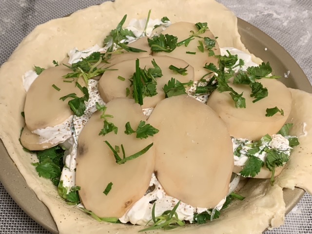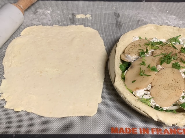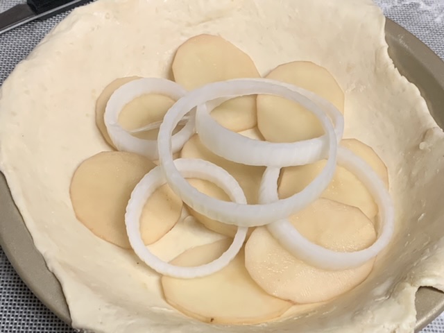 On commence avec le truffiat. Il n’y a pas de truffes dans ce plat — selon le site de Berry Province, le nom vient « De son ingrédient principal, les « treuffes » (pommes de terre) auxquelles ont été rajoutés de la crème fraîche, des fines herbes et de l’oignon. » Et j’avoue, je l’ai choisi à cause de la prochaine phrase : « La célèbre émission « La Meilleure Boulangerie de France » diffusée sur M6 a mis en avant ce plat typiquement berrichon en proposant aux candidats de le réaliser dans la plus pure tradition. » On ne doit que dire « tradition » et « La Meilleure Boulangerie de France » et je suis là ! Pour faire les pâtes feuilletées, j’ai suivi la recette de Cook and Record pour la galette des rois — ça suffit exactement pour mon moule à tartes.