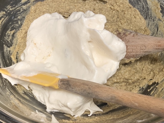 - Incorporez délicatement cette meringue à la pâte à l’aide d’une spatule souple, en trois fois.