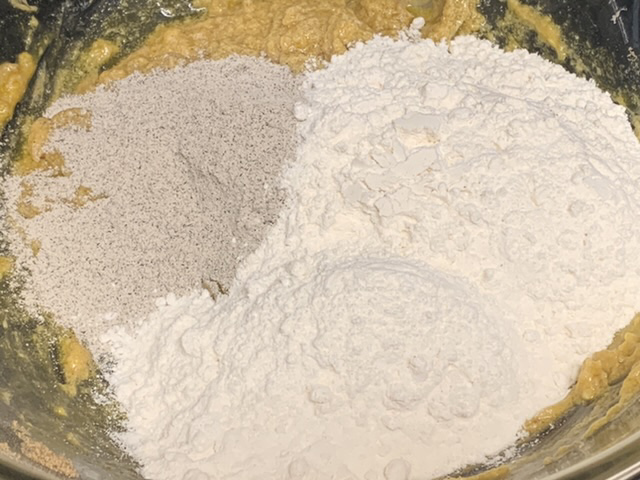 - Avec une cuillère en bois, ajoutez la farine et la faveline (ou farine de sarrasin).