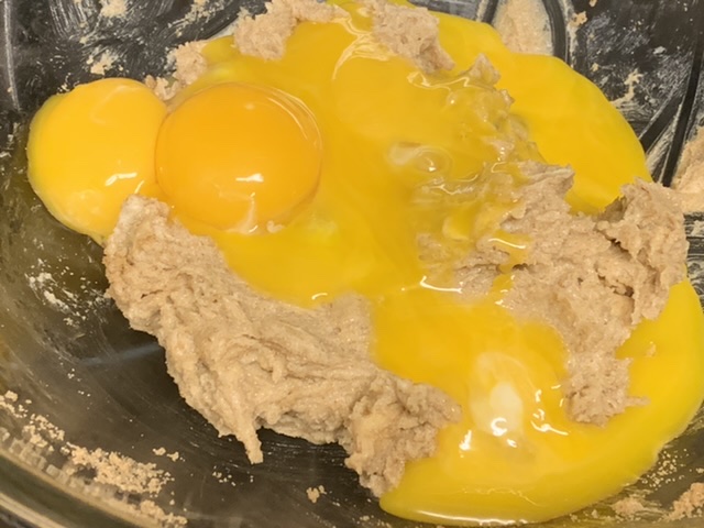 - Cassez les œufs et mettez les blancs de côté. Incorporez les jaunes au mélange beurre-sucre en fouettant.