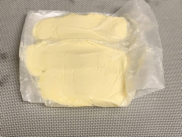Les instructions disent aussi d’utiliser du papier sulfurisé dans votre moule. Je vous donnerai des photos avec et sans — parce que je l’ai essayé, mais j’ai décidé que ça ferait une mauvaise forme. Avec un moule anti-adhésive, il n’y a pas de raison pour utiliser du papier sulfurisé.
