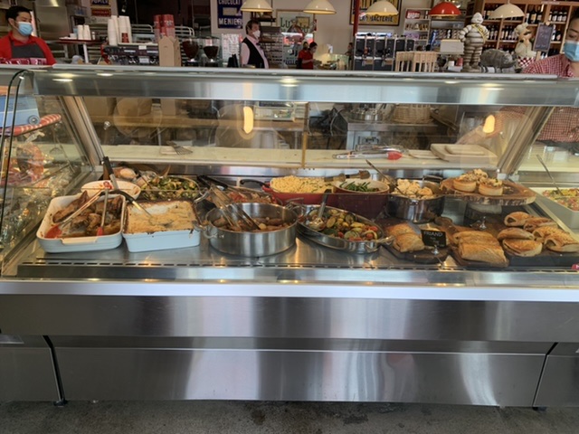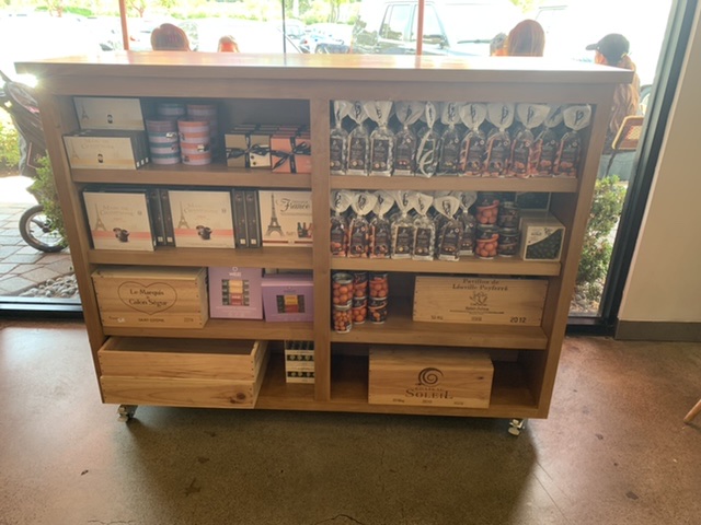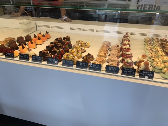 Hélas, il n’y a plus de pains au chocolat, et pas trop de croissants. Mais vous pouvez voir — ce sont de la qualité. Les desserts coûtent tous entre 5-7 $, et tous ont l’air bon. En plus, nous ne sommes pas finis ! Voici l’espace entre la boulangerie et l’autre comptoir :