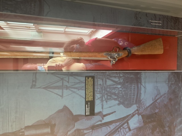 C’est une réplique d’un mousquet que les révolutionnaires ont utilisé. Mais qu’est-ce que dit la pancarte ?