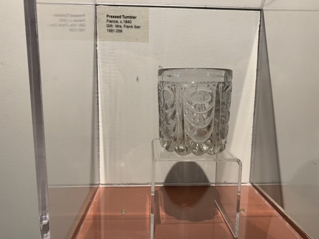 Un verre en verre moulé-pressé de 1840 de la cristallerie Saint-Louis, au Musée de Verre de Sandwich