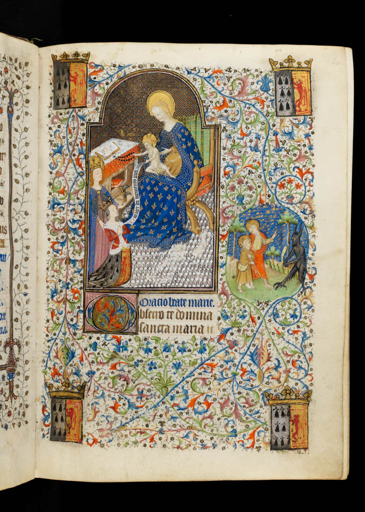 J’ai récemment lu d’une nouvelle découverte dans une œuvre très ancienne. Le magazine Robb Report, en anglais, a parlé d’un livre d’heures qui appartenait au duc de Bretagne, François Ier. Il s’avère que les scientifiques à l’Université de Cambridge viennent de découvrir un portrait caché au-dessous d’un autre portrait. Voici ce qu’on peut voir avec les yeux :
