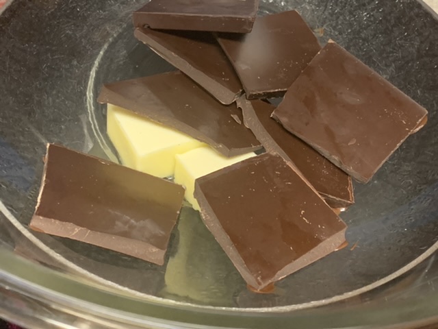 - Faire fondre le beurre doux et le chocolat dans un bain marie à feu moyen-doux.