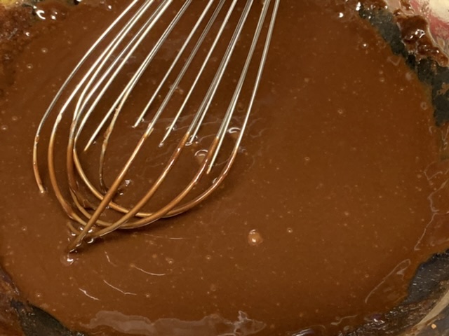 - Retirer du feu, ajouter le sucre, et la poudre de cacao et fouetter jusqu’à ce que le tout soit bien mélangé.