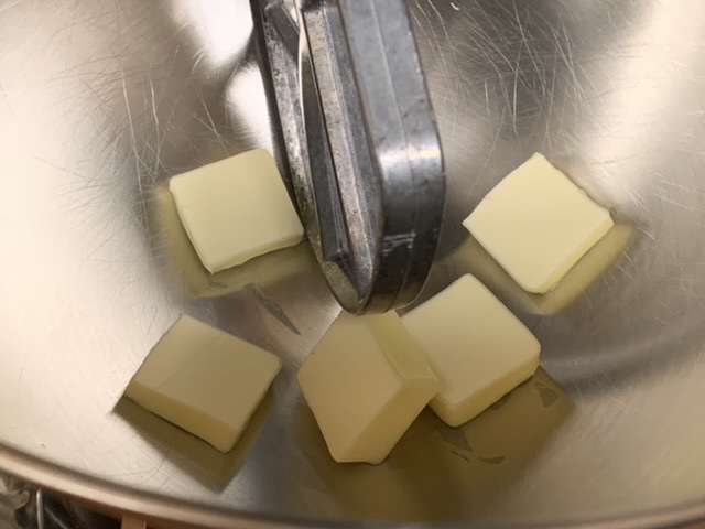 - Crémer le beurre dans un robot pâtissier avec la palette à vitesse moyenne.