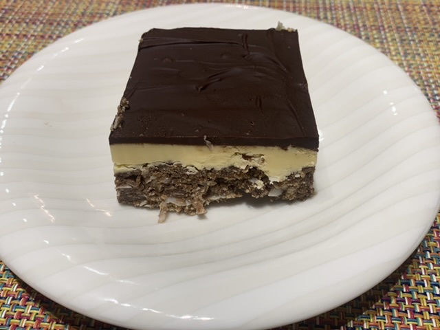 Je lui parle souvent de mes souvenirs de ce dessert, et aussi de la première chose que j’ai jamais commandé en français, les Poulet McCroquettes (l’horreur !). Pour info, les menus de McDo au Canada sont bilingues, et j’ai trouvé ce nom absolument drôle. En tout cas, on parle maintenant des barres Nanaïmo, et j’ai découvert ce soir que je les adore encore, autant qu’à l’époque.