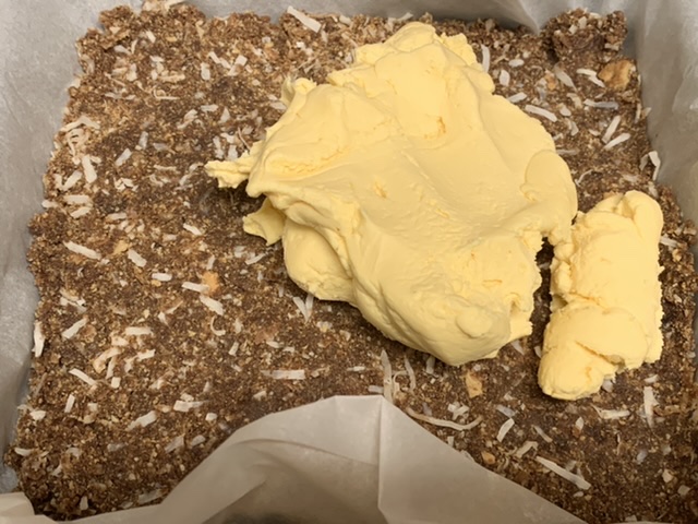 - Tapisser votre moule de papier parchemin et de parchemin de beurre, réserver.