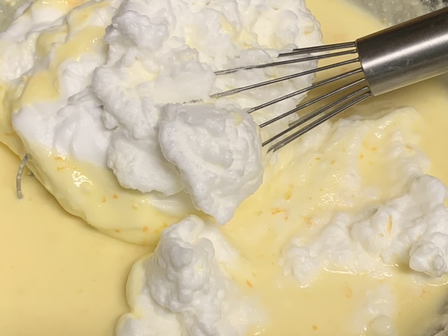 - Montez les 3 blancs en neige ferme avec 1 pincée de sel et incorporez-les délicatement à la préparation au brocciù.
