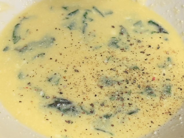 - Prélevez les feuilles de menthe, rincez-les, séchez-les, hachez-les, ajoutez-les aux œufs. Salez, poivrez.