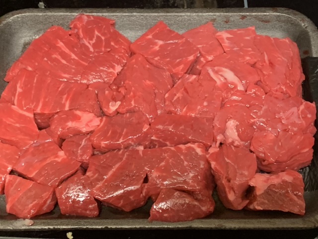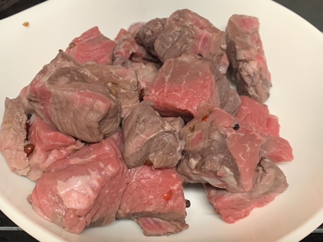 - 500 grammes de paleron maigre de bœuf coupé en cubes de 5 cm