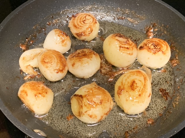 - Les cuire sur feu fort afin d’évaporer l’eau le plus rapidement possible et de permettre ainsi au sucre et au beurre de former un caramel. Lorsque le caramel est formé, remuer les oignons en secouant la casserole afin de les colorer uniformément.