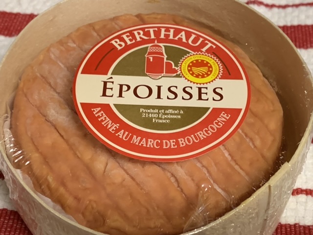 Pour ce dîner, j’ai trouvé plusieurs choses qui viennent de la Côte-d’Or. Le fromage est l’Époisses — et ça coûte CHER — environ 20 €, deux fois ce que l’on payerait chez Carrefour. Et le vin est des Hautes-Côtes-de-Beaune. Voilà :