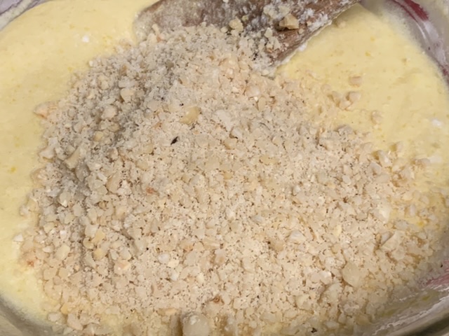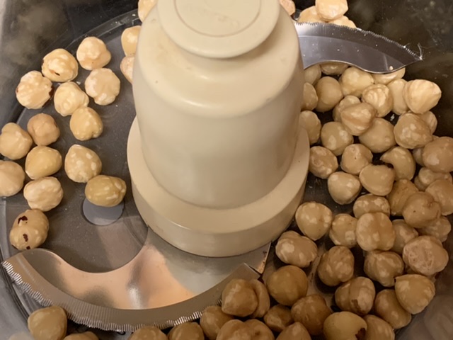 - Quand le mélange est homogène, ajoutez les noisettes en poudre.