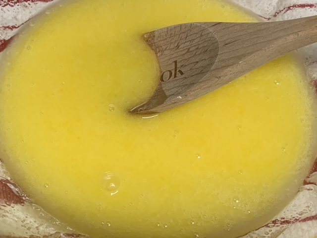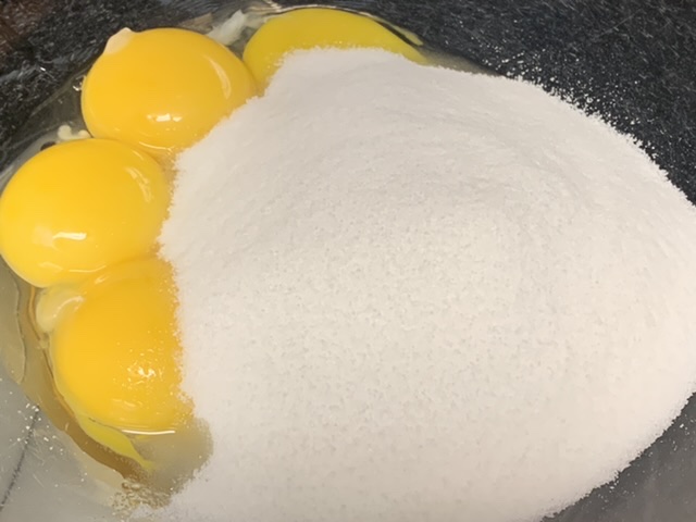 - Séparez les 4 jaunes d’œufs dans un saladier et mélangez-les avec le sucre.