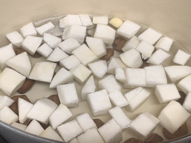 Les instructions pour la soupe aux châtaignes et aux raves :