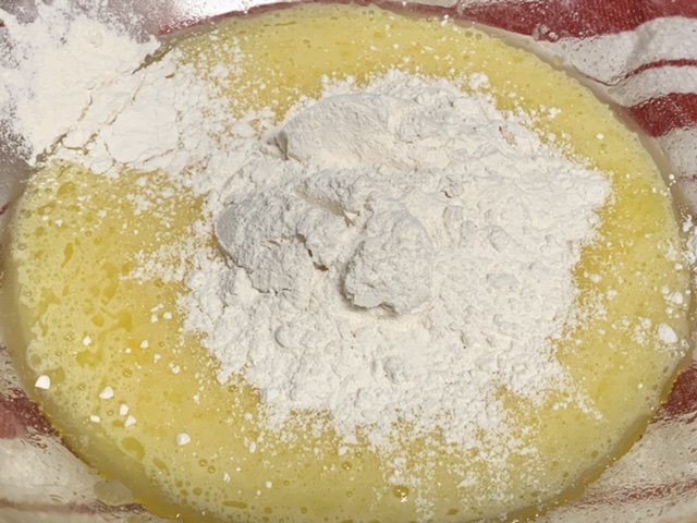 - Incorporez à la pâte la farine et les œufs en neige petit à petit avec une cuillère en bois pour ne pas « casser » les blancs.