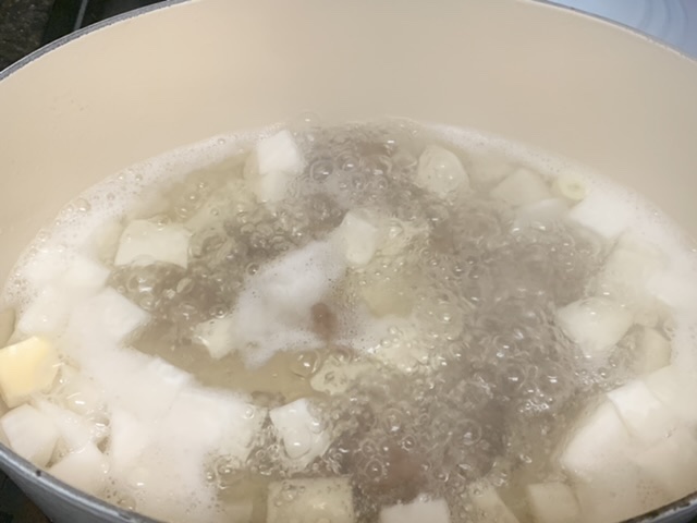 J’avoue, je n’ai aucune idée de la différence entre les marrons et les châtaignes. Ici, c’est un petit miracle de trouver n’importe quoi sous le nom de « chestnuts ». Alors, je suis heureux d’avoir trouvé des marrons de Clément Faugier pour le dîner de ce soir, la soupe aux châtaignes et aux raves et le gâteau creusois.
