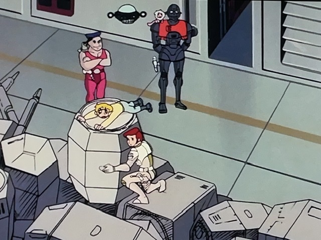Voyez-vous le jeune enfant ? Au début, Capitaine Flam refuse de lui permettre de rejoindre son équipe. C’est donc bien évident qu’il il se faufilera à bord de la fusée.