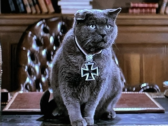 Prochainement, l’un des généraux allemands reçoit un chat, un moment bizarre juste pour faire ce gag, je crois.