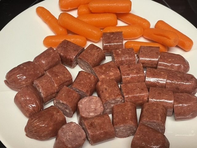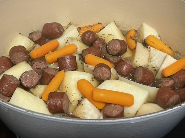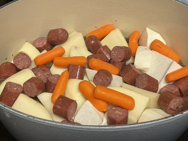 Couper vos saucisses et vos carottes, si nécessaire.