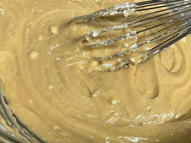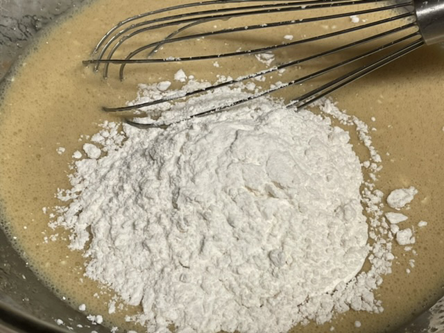 Ajoutez le beurre et le sucre, battez, incorporez la farine petit à petit, battez toujours. — J’ai ajouté la farine un pot à la fois. Le premier est facile à mélanger. Le deuxième n’est pas difficile. Le troisième — préparez-vous à TRAVAILLER.