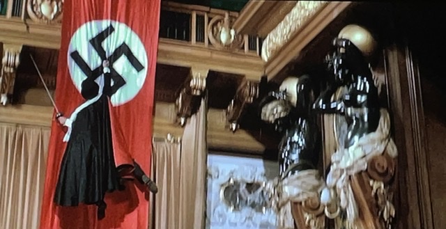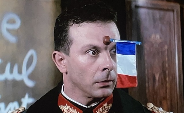 Il y a un moment VRAIMENT bizarre vers la fin où Jacques Villeret, en tant que maréchal allemand, chante une chanson d’amour à la mère des Bourdelle. Je ne pouvais pas du tout comprendre les paroles, mais c’était évident vu le contexte. Après, Super-Résistant réapparaît, et le maréchal se bat contre lui avec une épée. Mais pourquoi les soldats allemands ne l’abattent-ils pas ? Aucune idée.