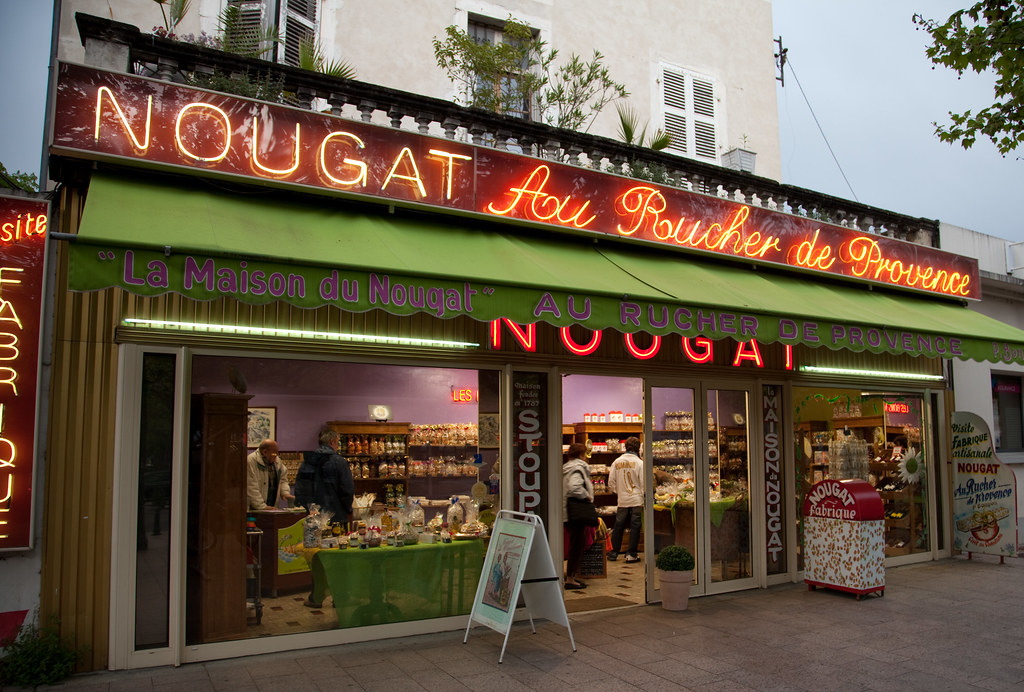 On passe maintenant à Montélimar, chez le nougat. Malheureusement, grâce à un commentaire de mon lecteur Bernard, j’ai acheté de ce nougat avant de quitter la France. Pourquoi malheureusement ? PARCE QUE C’EST DÉLICIEUX ET MAINTENANT JE SUIS ACCRO ! (Heureusement, cette marque, Trois Abeilles, est disponible chez moi grâce à myPanier.)