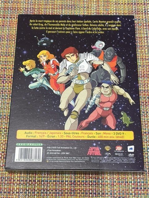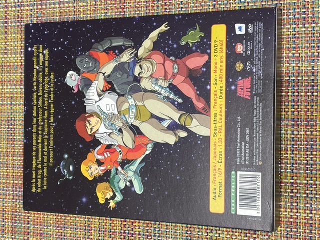 Il y a 3 boîtes au-dedans de la grande boîte. On peut voir au dos des petites boîtes plus d’infos sur la série, dont son titre original en anglais, Captain Future :