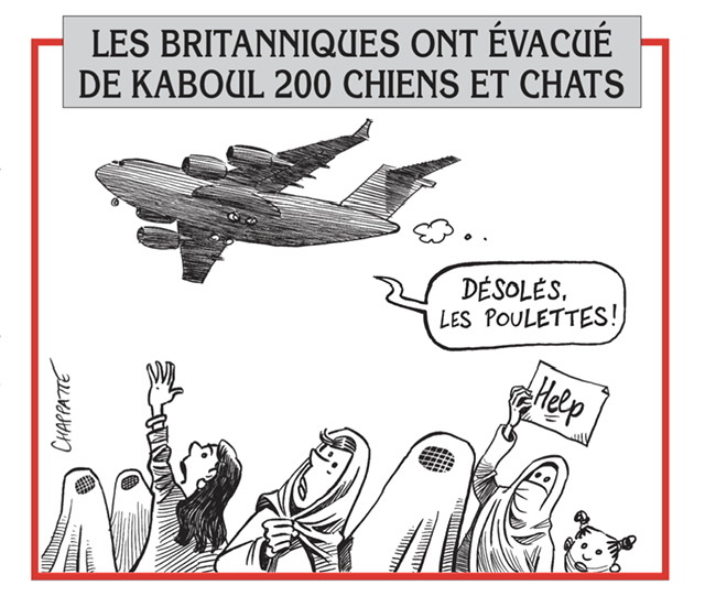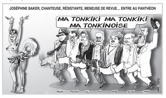 Le Canard Enchaîné continue — justement — de parler d’Afghanistan, mais les vraies nouvelles de cette semaine, c’est que Joséphine Baker fera partie du Panthéon. Le Canard a juste la chose pour l’occasion :